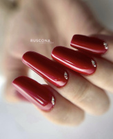 Einfarbige Valentinstag-Gelnägel wirken luxuriös, rein und lassen sich leicht mit jedem Outfit kombinieren. Wenn Sie das Design etwas aufpeppen möchten, reicht ein Akzentnagel mit einem dezenten Detail – eine dünne Linie, ein Steinchen oder ein zarter Glitzer.