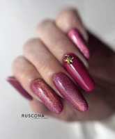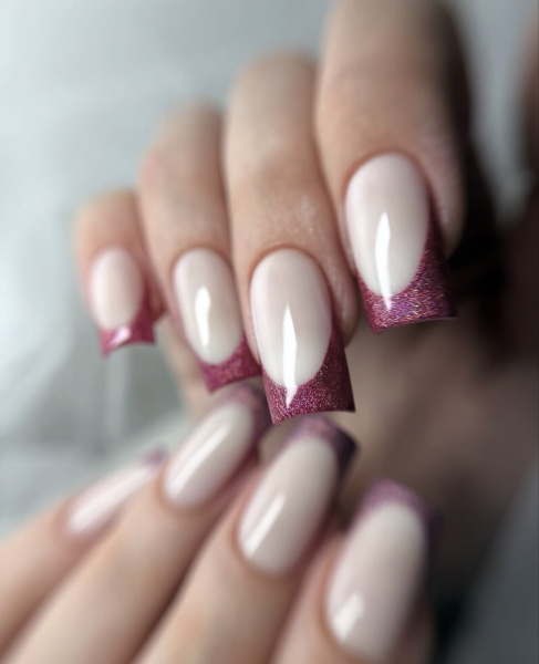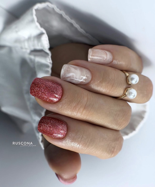 Die Kombination aus Rosa- oder Rottönen, feinem Glitzer und einer transparenten oder milchigen Grundierung sorgt für einen luxuriösen und dennoch romantischen Eindruck.