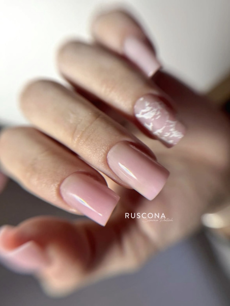 3. Tragen Sie ein milchiges oder nudefarbenes Modelliergel auf und polymerisieren Sie.